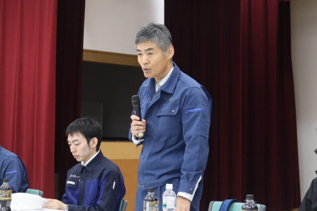 安全会議では、岐阜森林管理署 島内厚実 署長から、「請負事業体等における重大災害の発生状況を踏まえた安全指導等について」安全指導を受け、その後、関労働基準監督署栗本労働基準監督官から関労基署管内における「林業・建設業の労働災害の発生状況について」管内で発生した災害の分析等を通じて労働災害防止対策のお話しをしていただきました。
